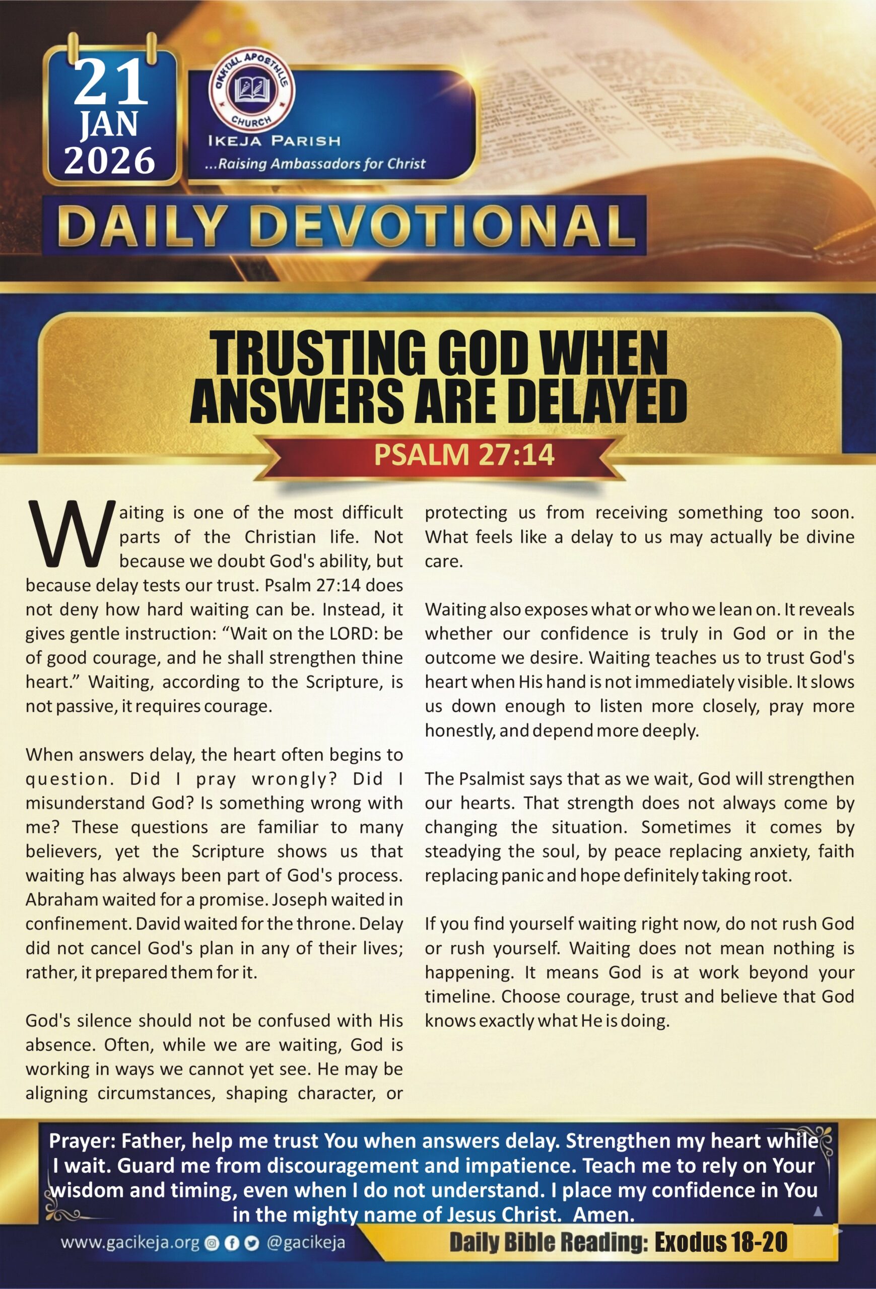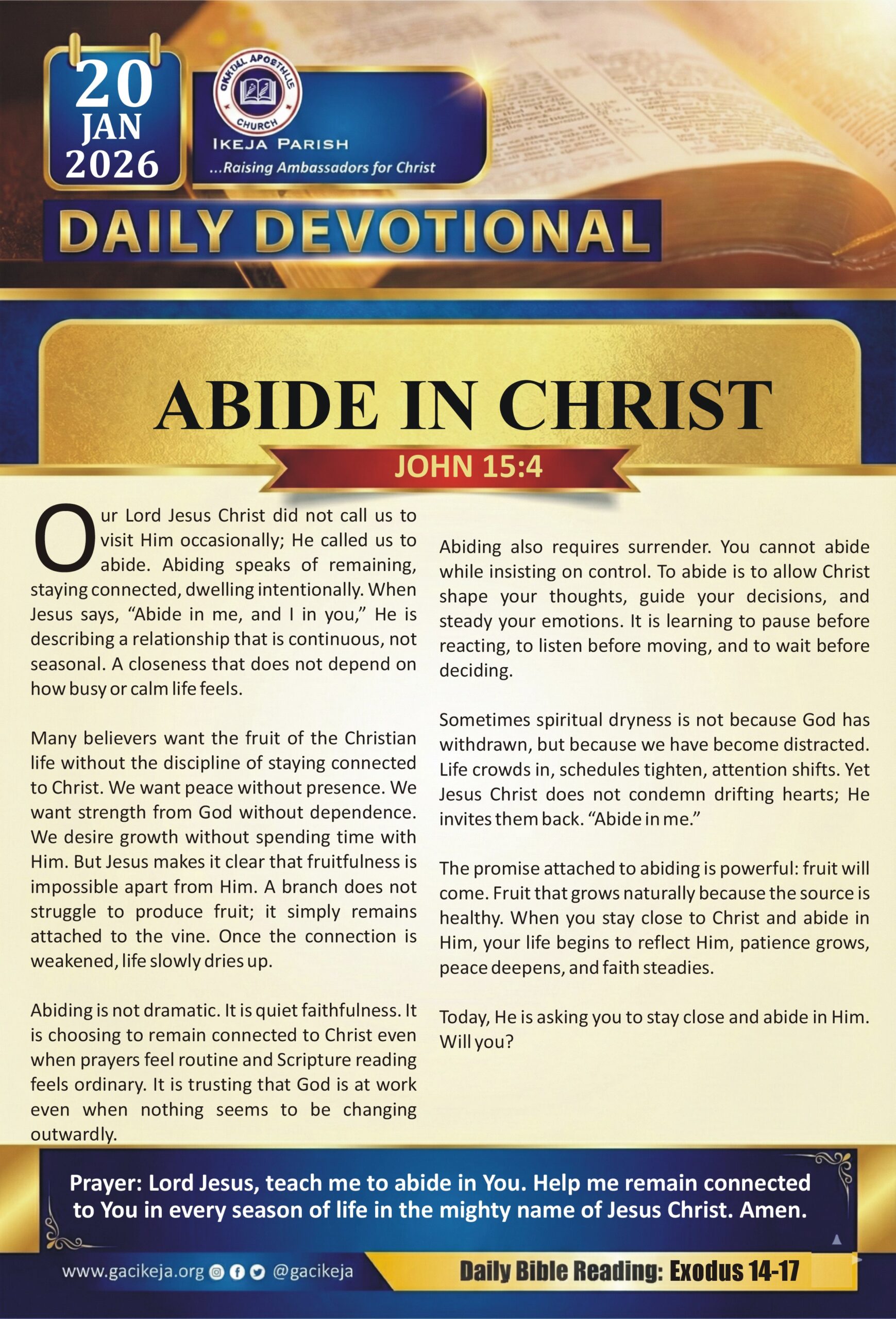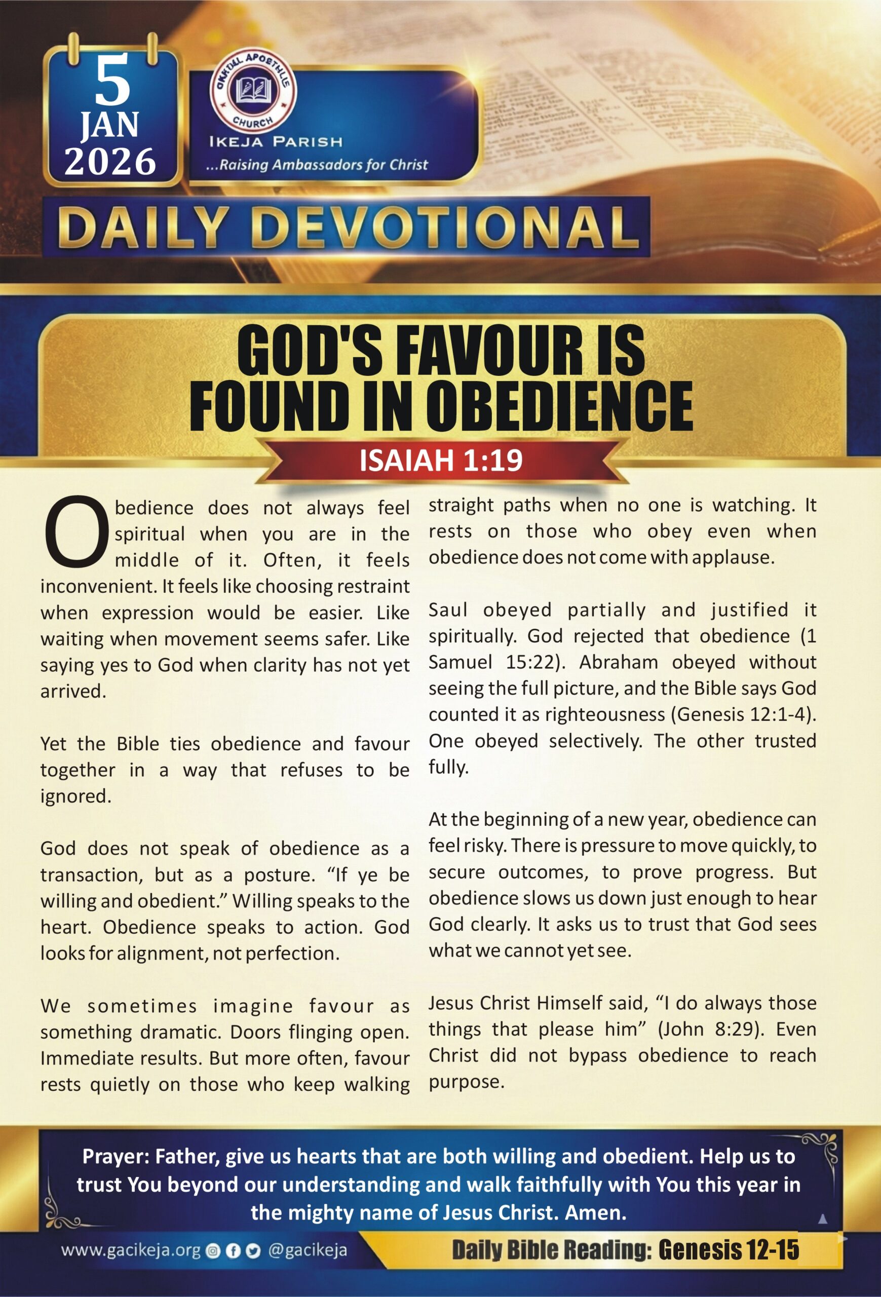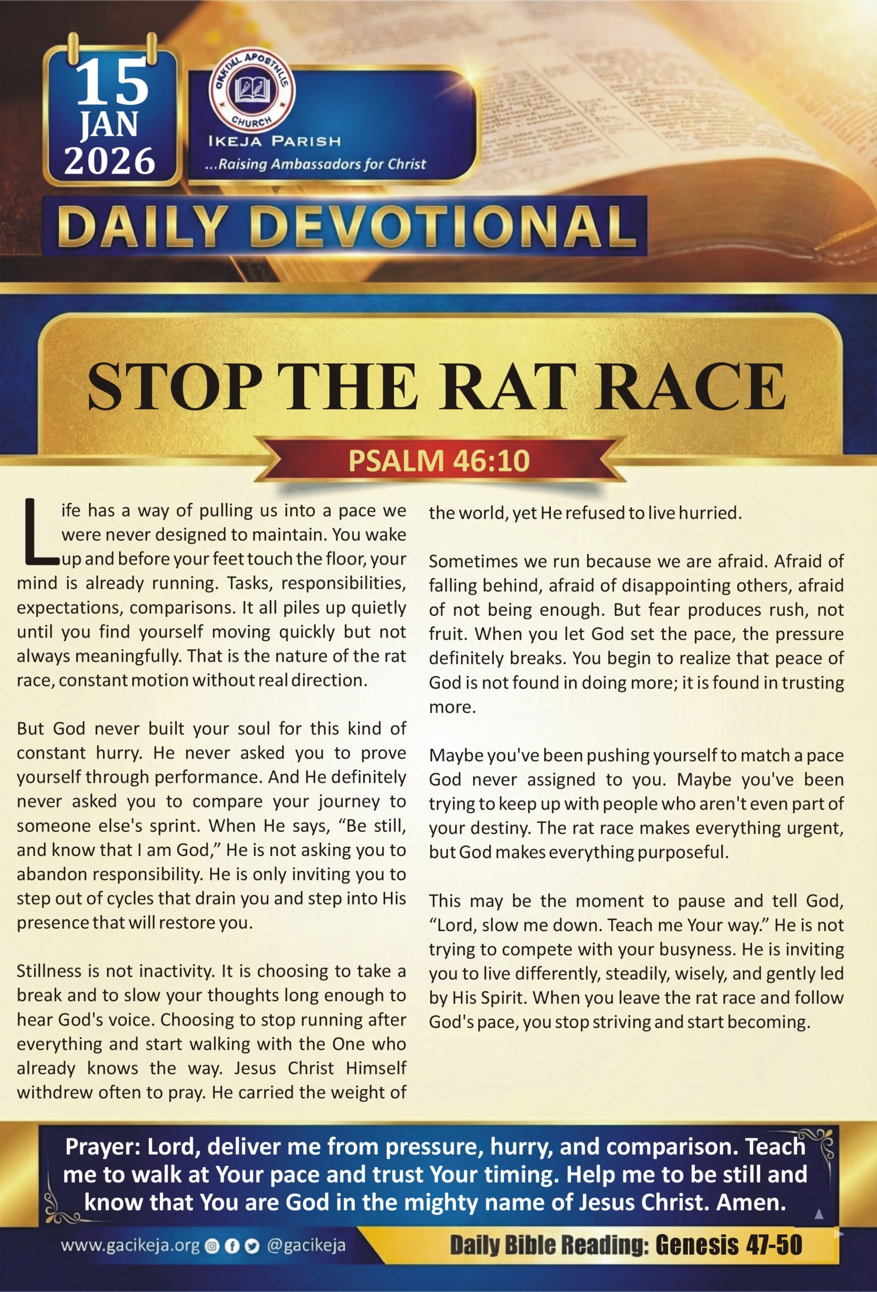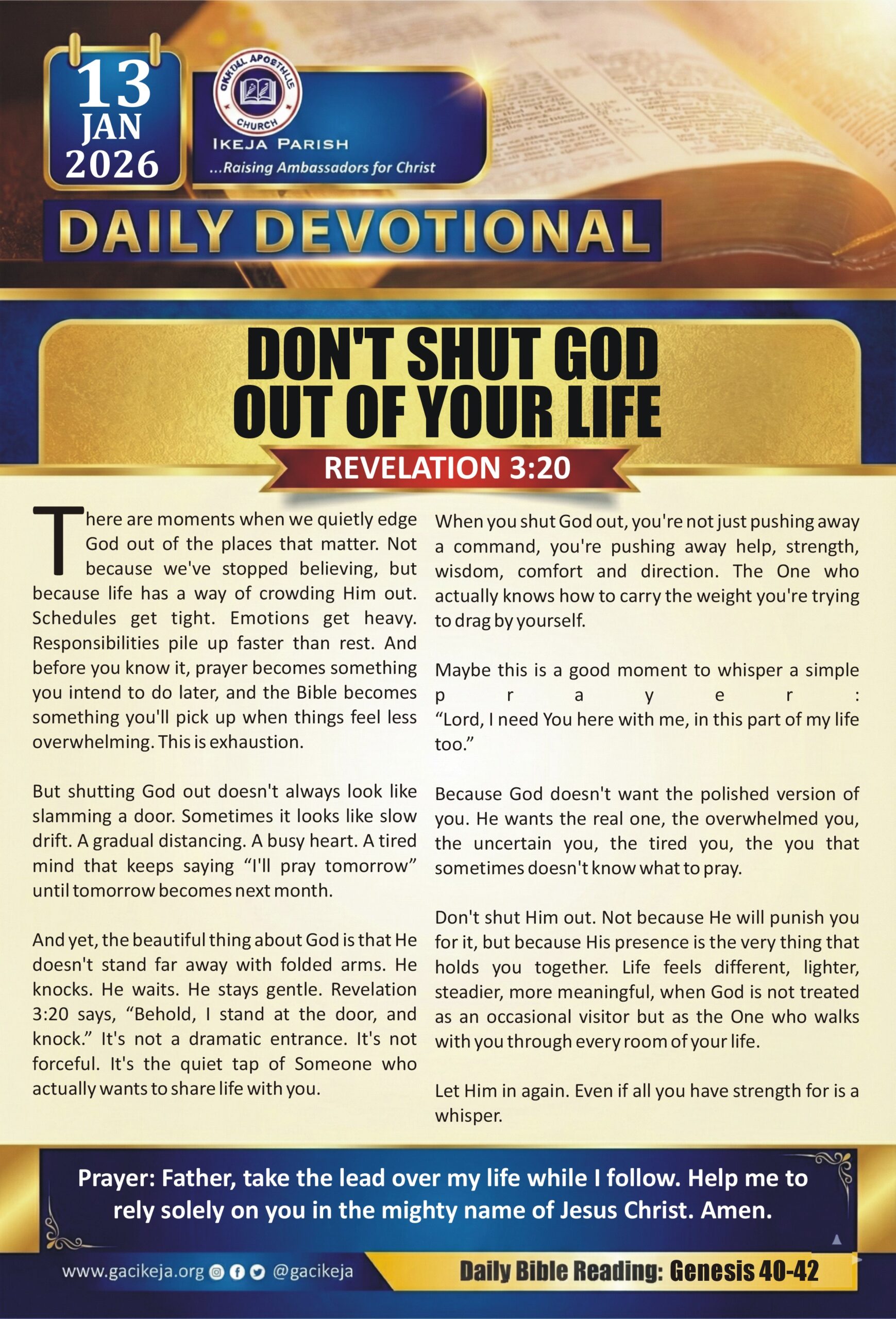 Nothing is more important than meditating with God on a daily basis regardless of the situation. Stay closer to your creator through the daily devotion. Stay blessed as you do so.